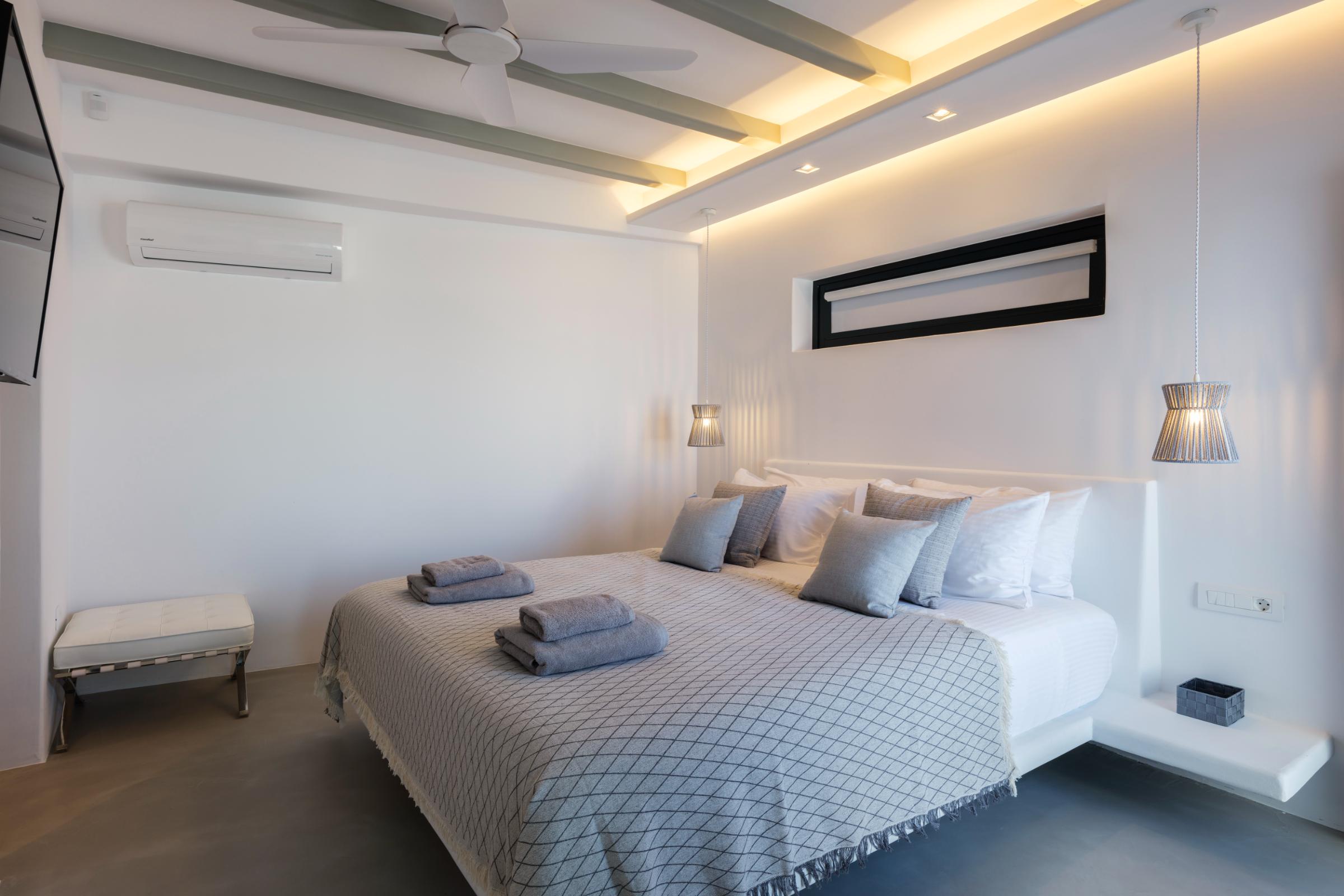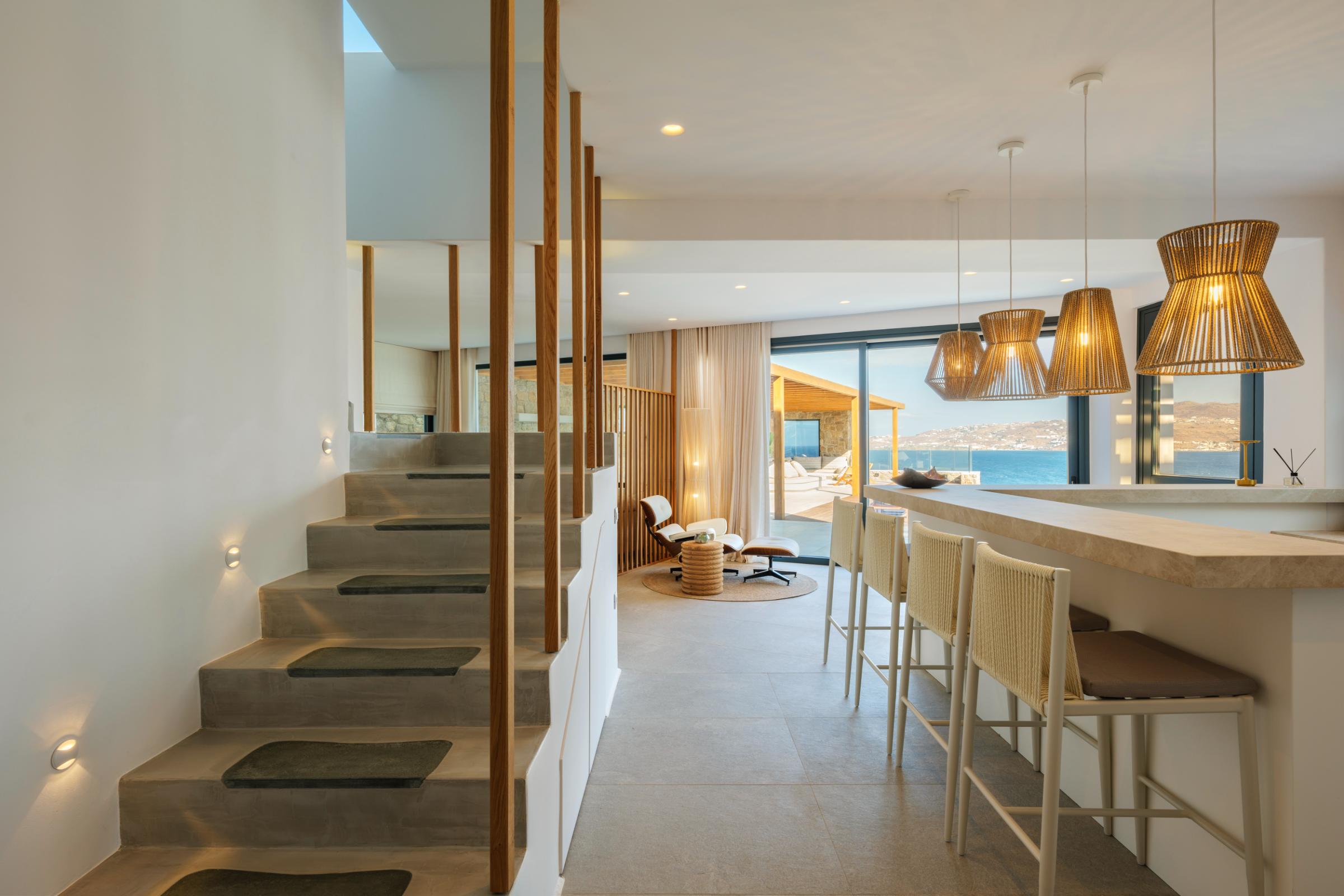 The luxurious, brand-new villa is perfectly positioned in a prime location, offering breathtaking panoramic views of the Kanalia and Corfos areas on the iconic island of Mykonos. Its elevated setting provides a seamless blend of tranquility and beauty, making it an exceptional retreat.
