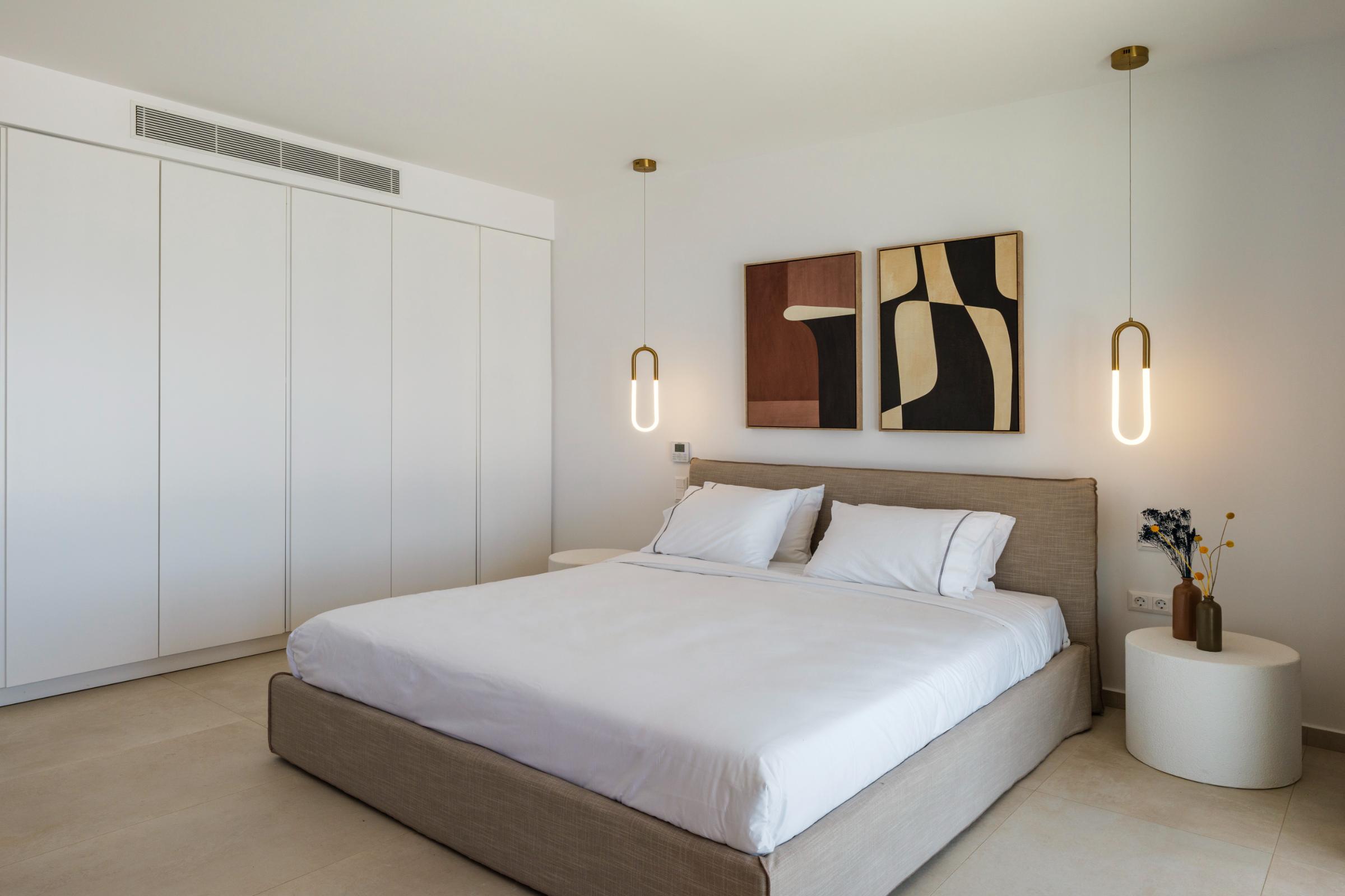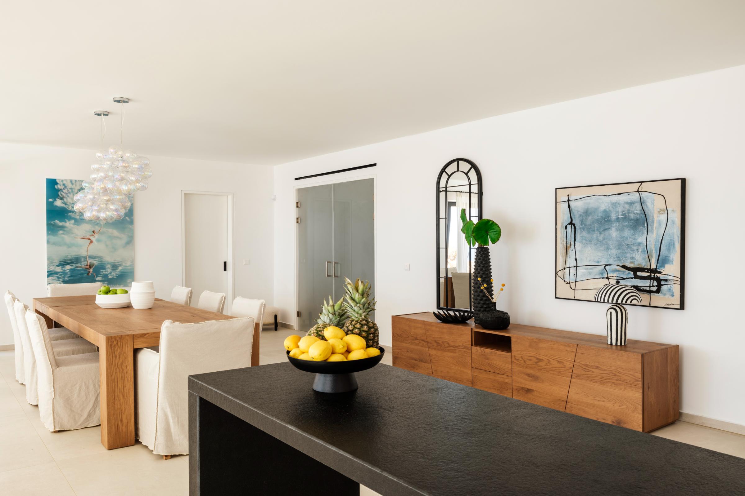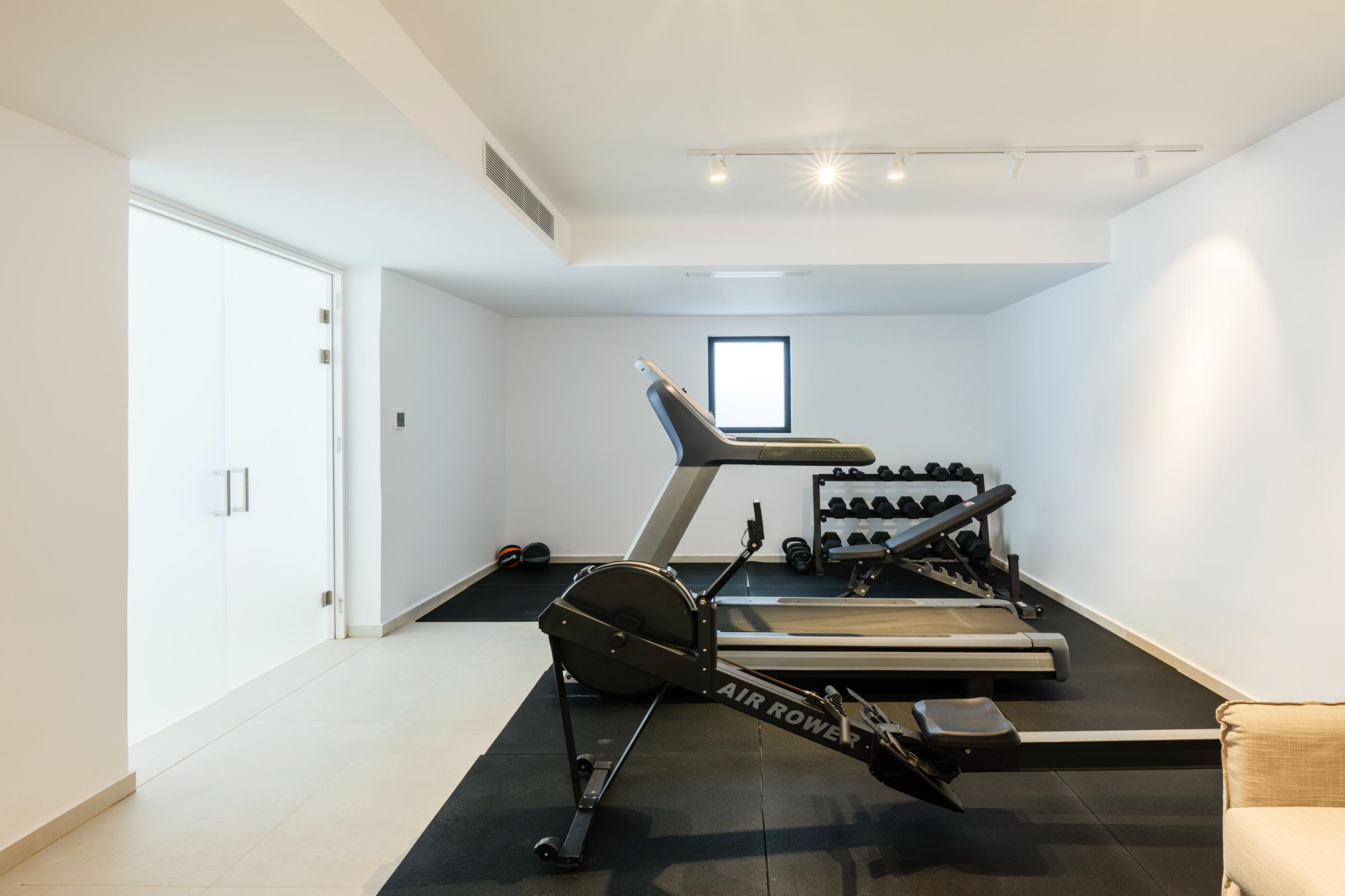 On the upper level, you’ll find two elegant double bedrooms with en suites and private access to a balcony overlooking the sea. The pool level offers a fully equipped kitchen, a gym area, and an open-plan lounge and living space. Here, three independent gue...