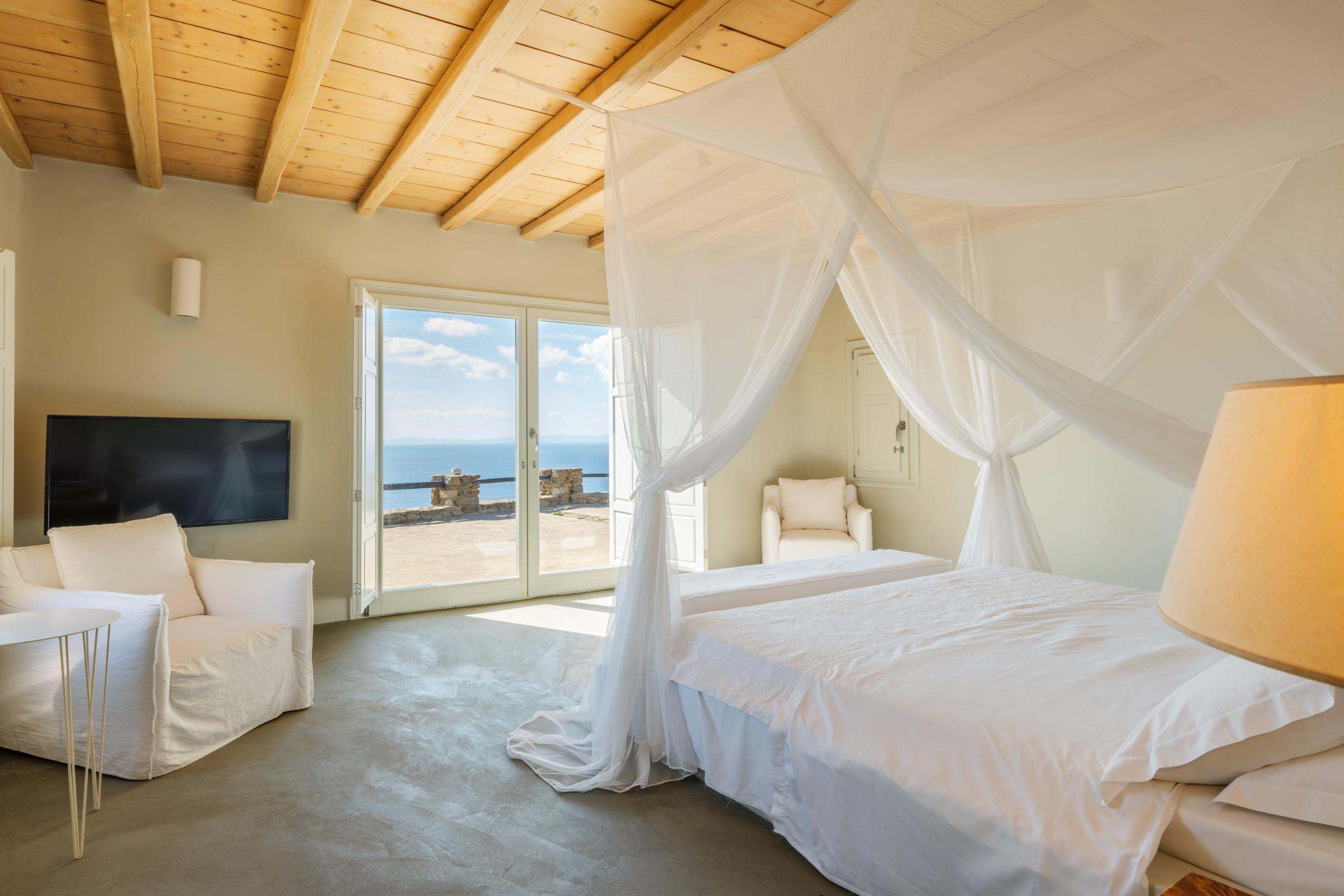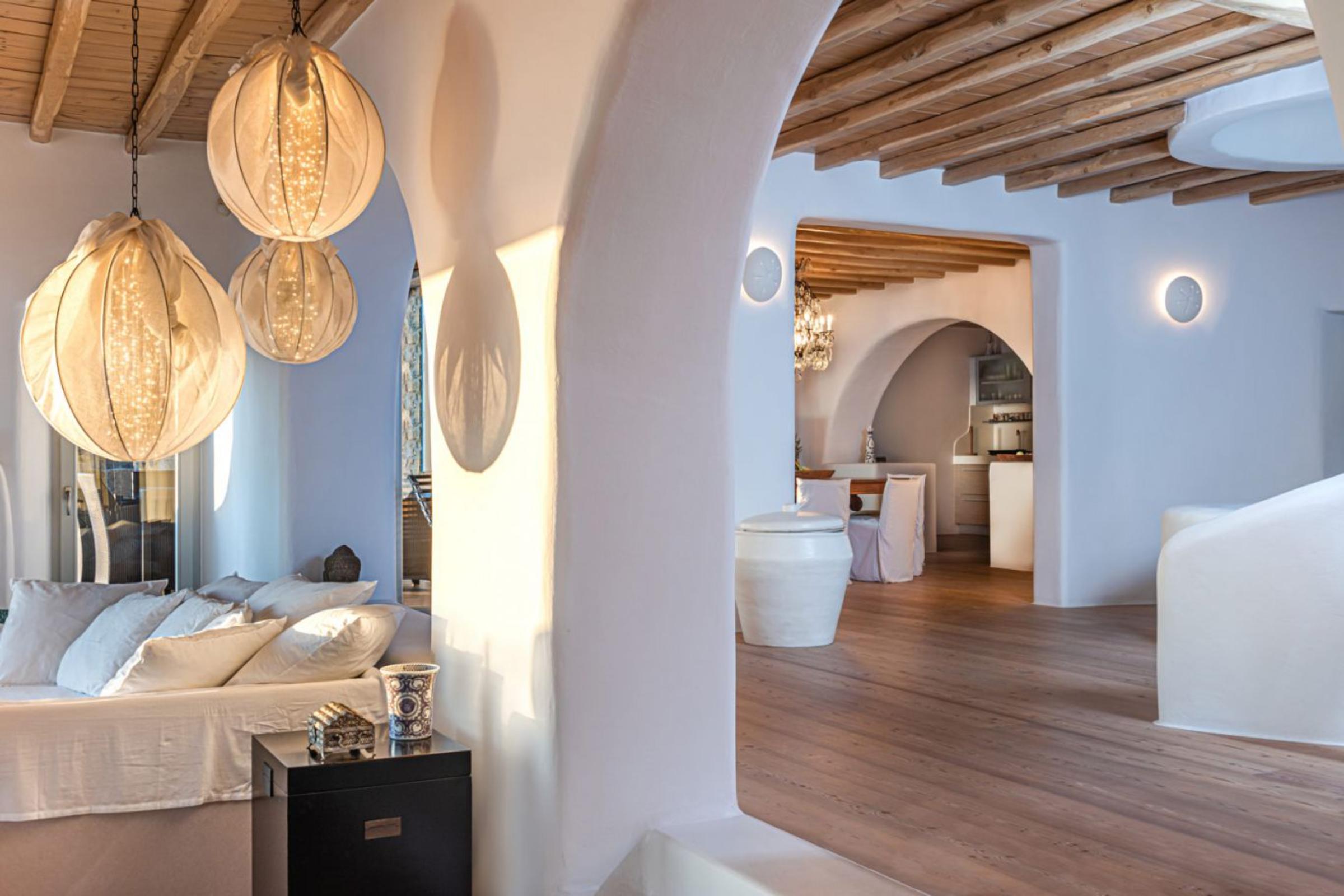 Exhale stress, inhale the panoramic views from your heavenly bed in one of the 10 bedrooms of Montessito Villa. This top-luxury property is nestled on the top of a hillside, just minutes away from Mykonos Town and boasts a huge infinity pool for treasured moments of leisure and fun! Let yourself unwind while gazing at the boats sailing from the port through the sunset. The property offers complete privacy to its guest, and it conveniently close to Mykonos Town.