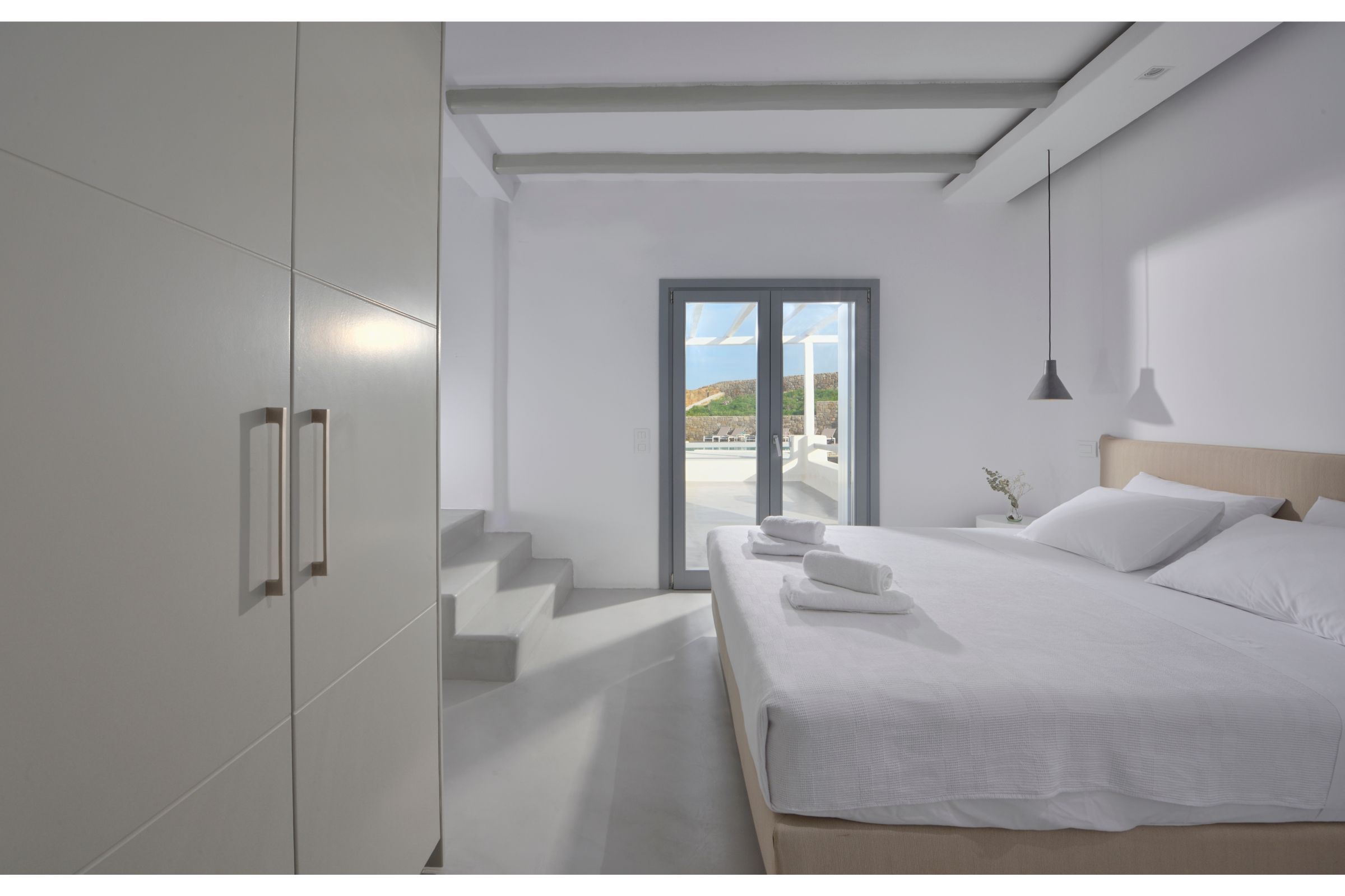 Nimphi II is a luxurious 4-bedroom villa at the prime area of Kanalia. The villa is part of a small complex of 3 sister villas. The position of the villa allows it to boast undisturbed views that spread from Mykonos Town to the neighboring island of Tinos.