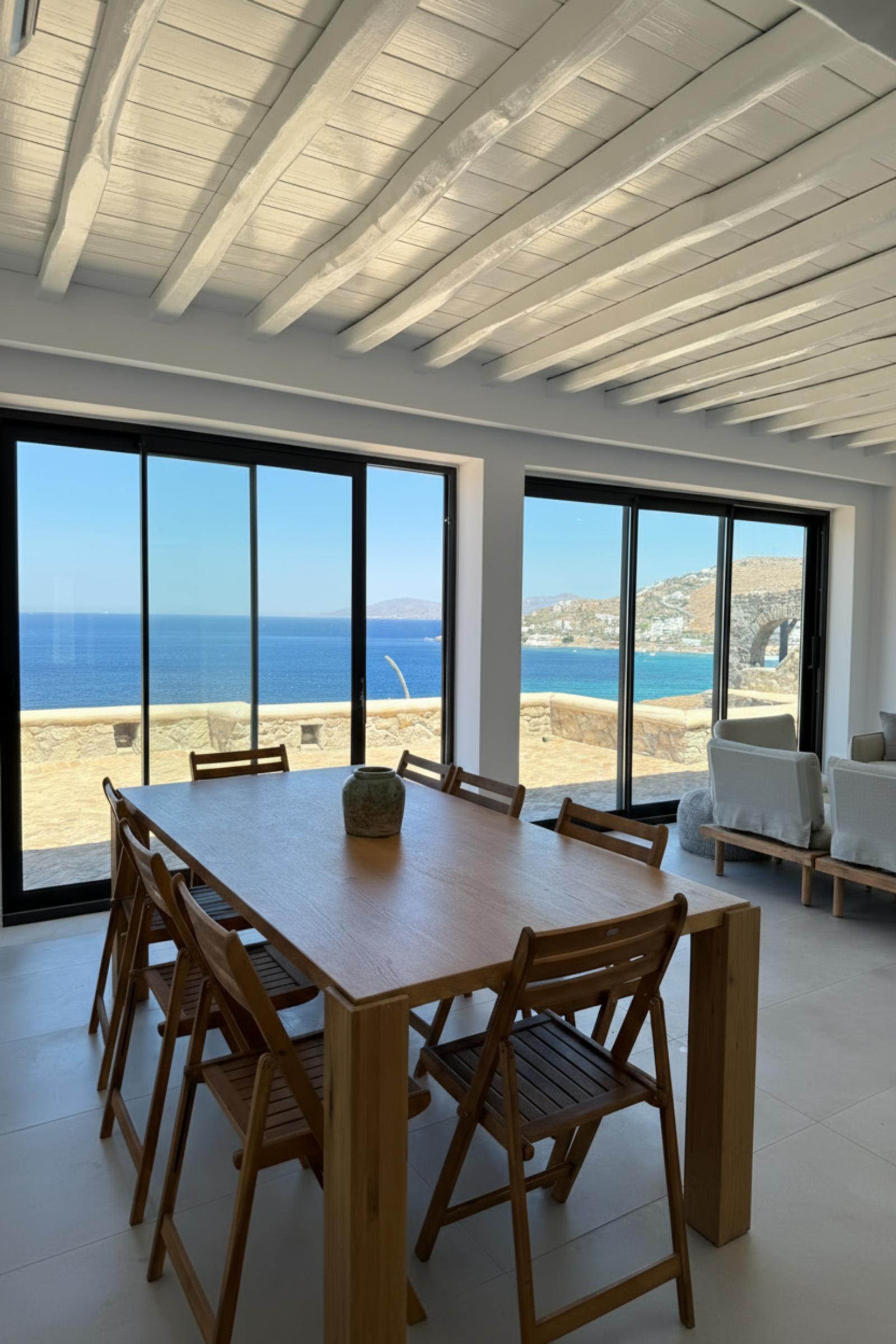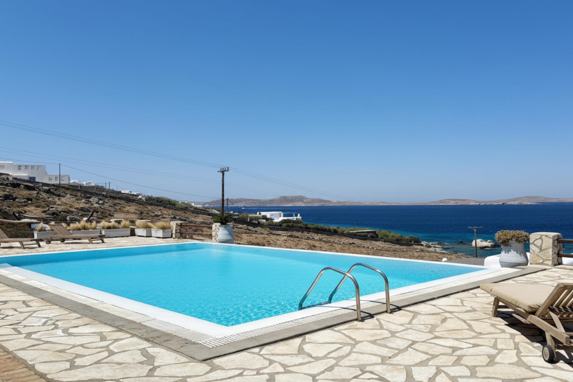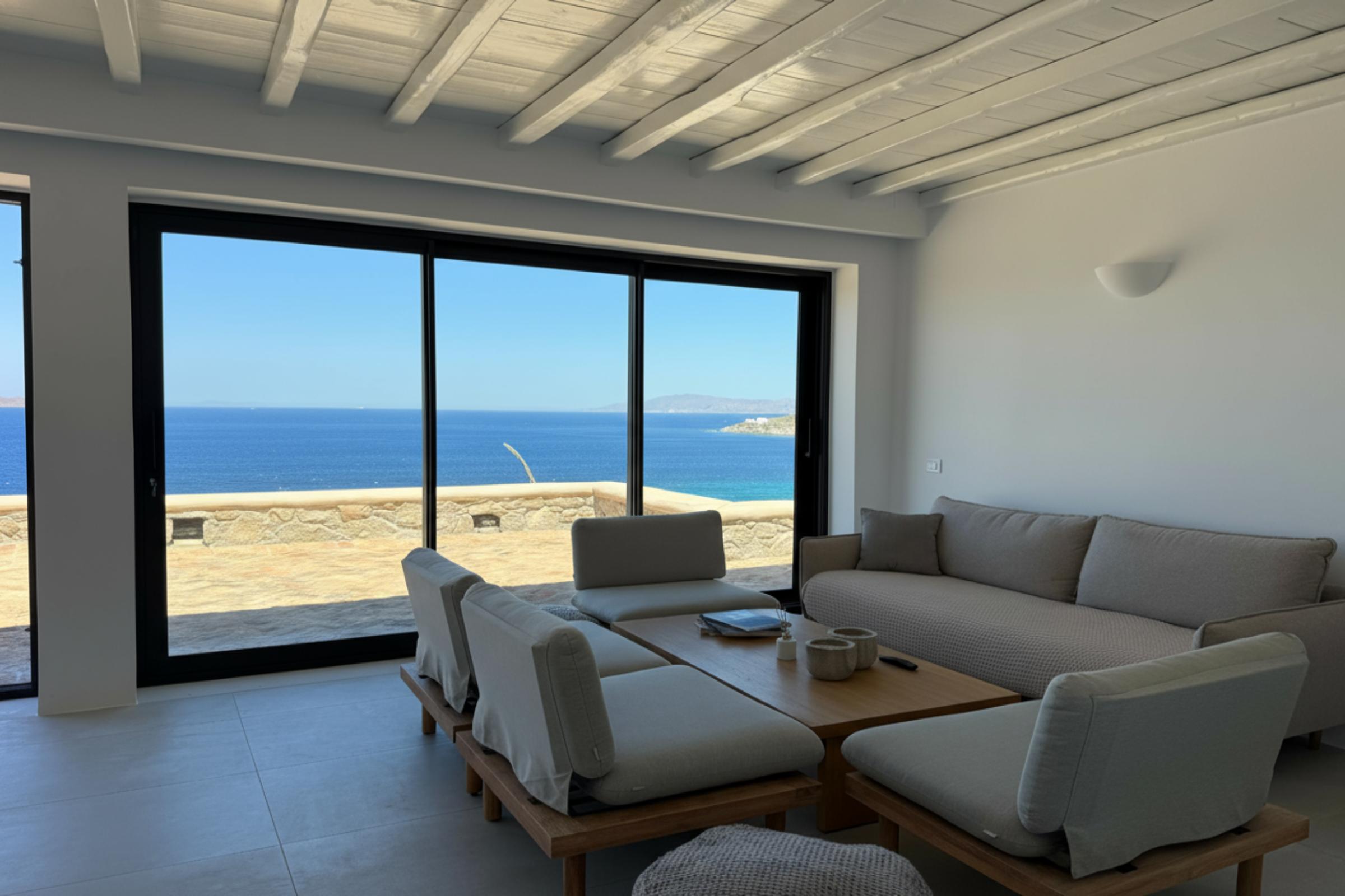 Salty View Villa is a luxurious retreat nestled in the exclusive residential enclave of Aleomandra. Its prime location offers breathtaking views of the ancient islands of Delos and Rhenia, along with spectacular sunsets over the Aegean Sea.