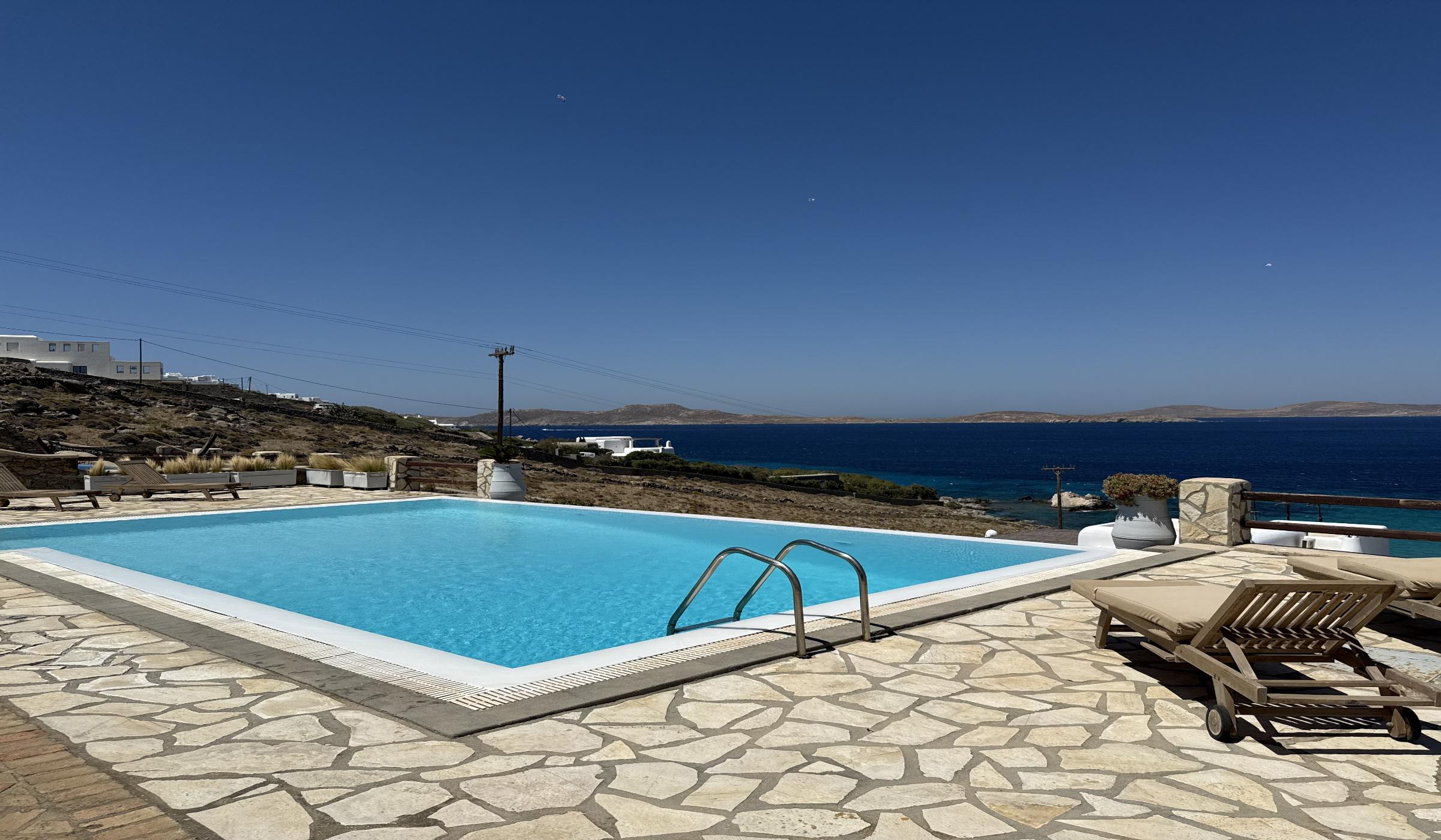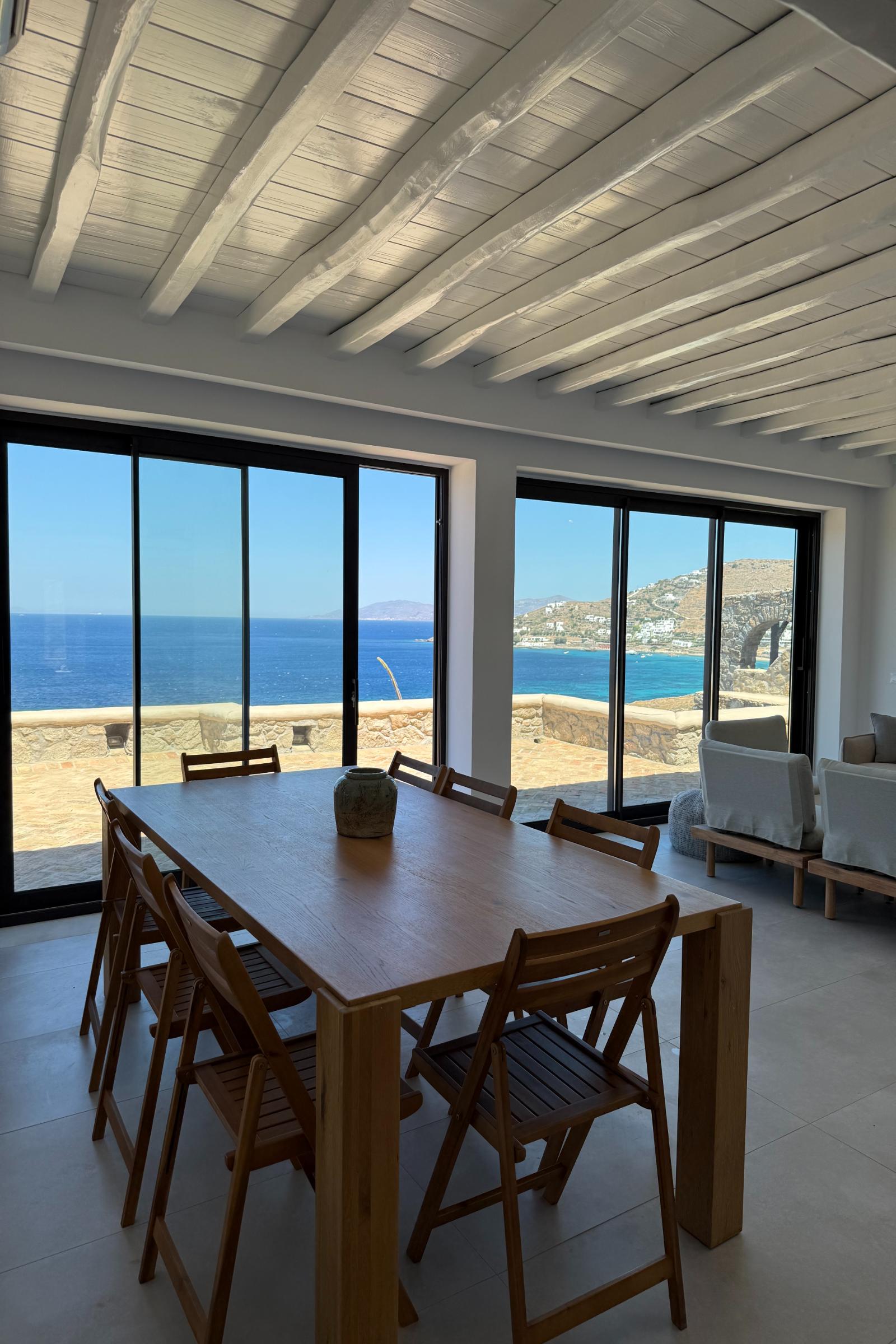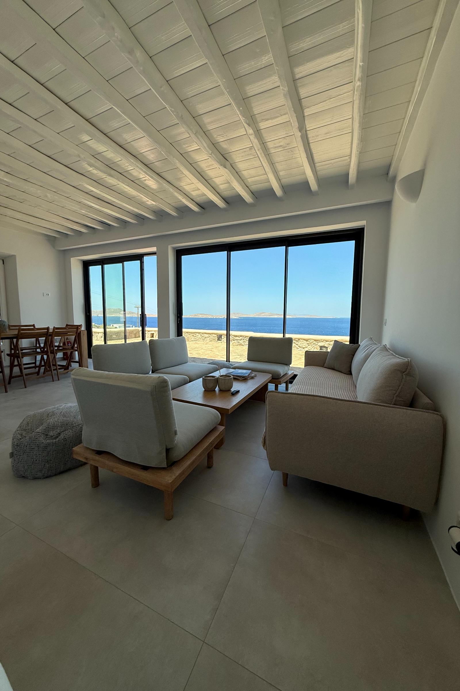 Salty View Villa is a luxurious retreat nestled in the exclusive residential enclave of Aleomandra. Its prime location offers breathtaking views of the ancient islands of Delos and Rhenia, along with spectacular sunsets over the Aegean Sea.