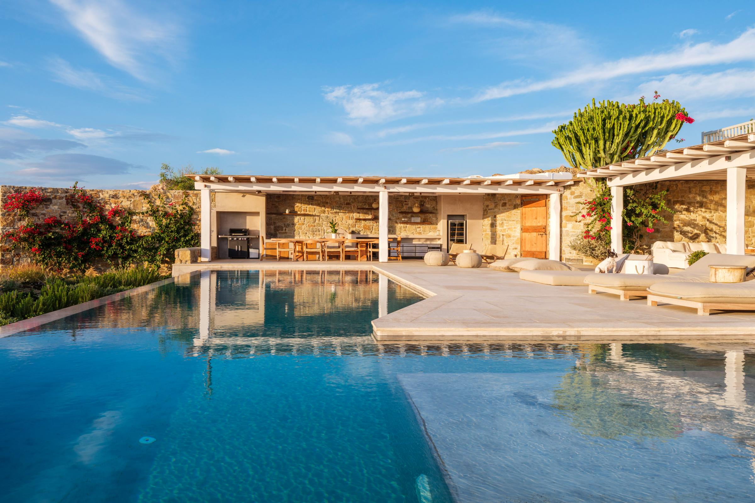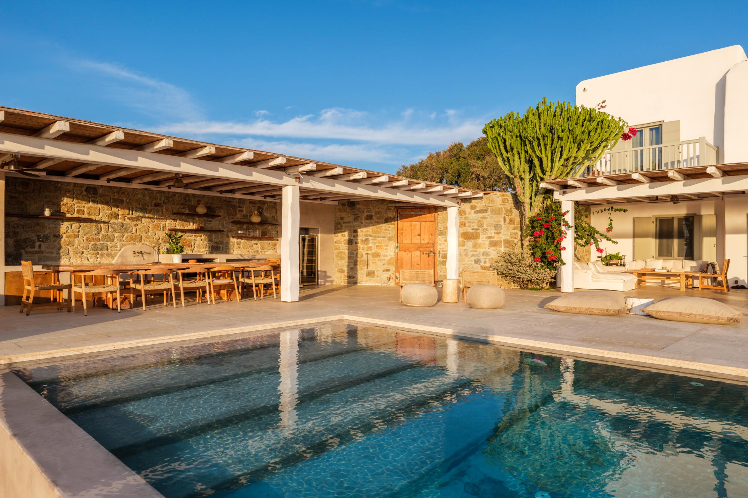 Sea Whisper Villa enjoys a privileged location in Paraga, perched just above Paraga Beach, Soho Roc House, and Scorpios Beach Club. Its design blends luxury with boho-inspired details, and the villa has been recently renovated to showcase breathtaking sunset and sea views.
